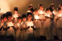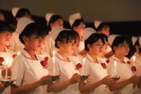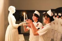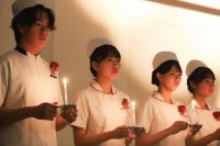 学生は、教員からナースキャップを、ナイチンゲール像からろうそくの灯を戴くことで、